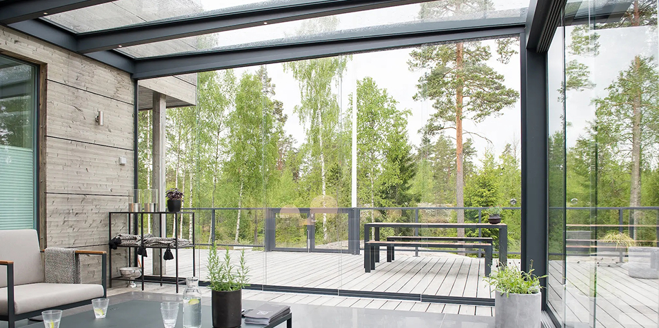 Vaakasuoran kattorakenteensa ansiosta Ultraline-mallisto soveltuu erinomaisesti myös talon matalan tai jyrkän räystään alle, missä ei ole riittävästi tilaa perinteiselle pulpettimalliselle lasikatolle.