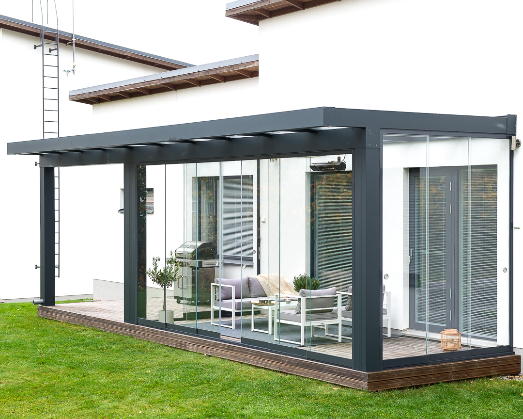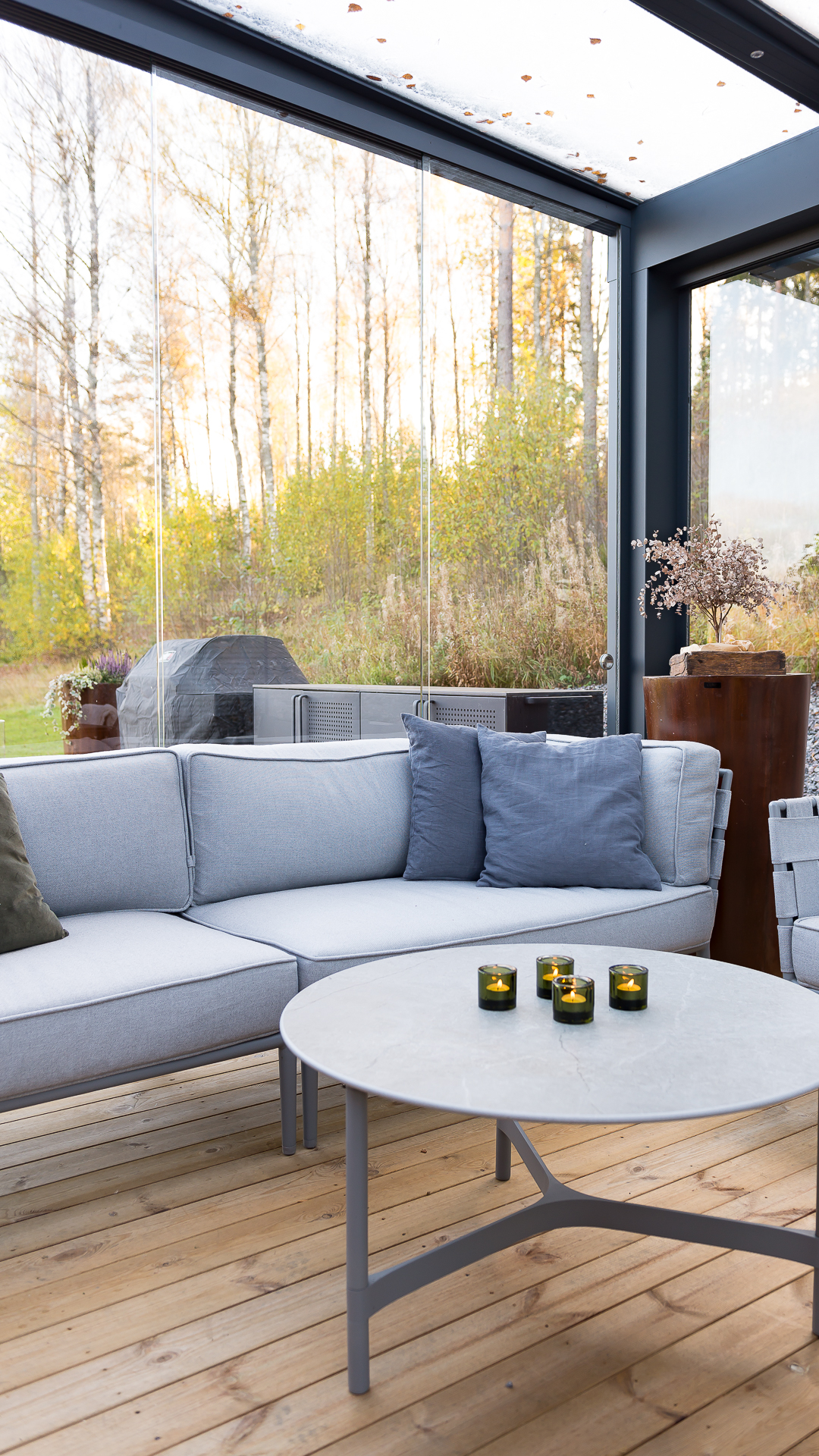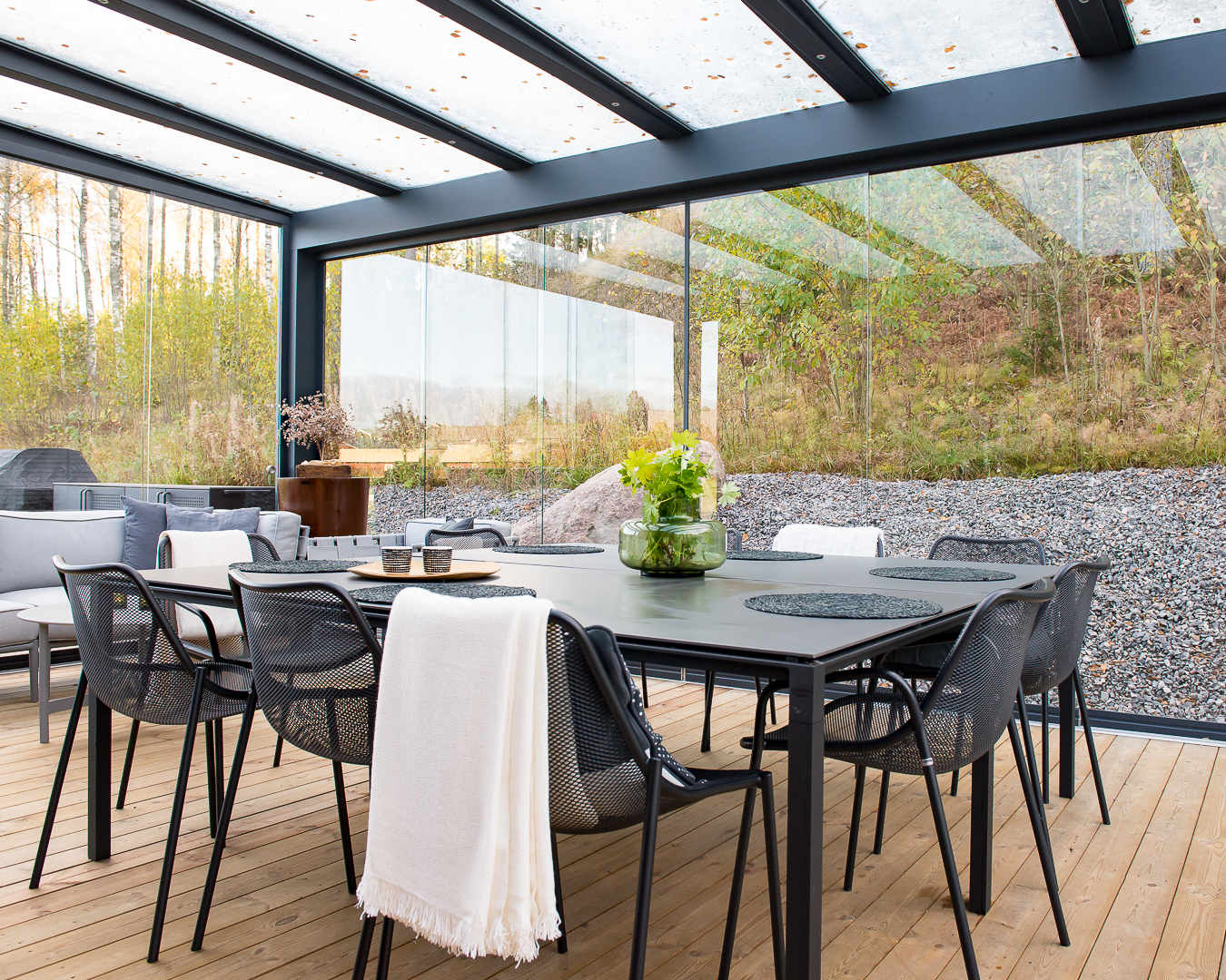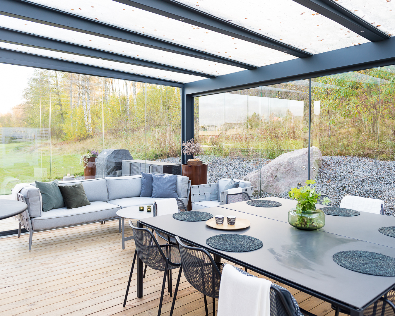 Ultraline Classic on mahdollista toteuttaa myös erillisenä rakenteena eli irti rakennuksen julkisivusta, esimerkiksi kesäkeittiöksi rannan läheisyyteen. Tuotteeseen on saatavilla laaja valikoima lisävarusteita ja tuote on yhteensopiva kaikkien Vitrum lasitustuotteiden kanssa.