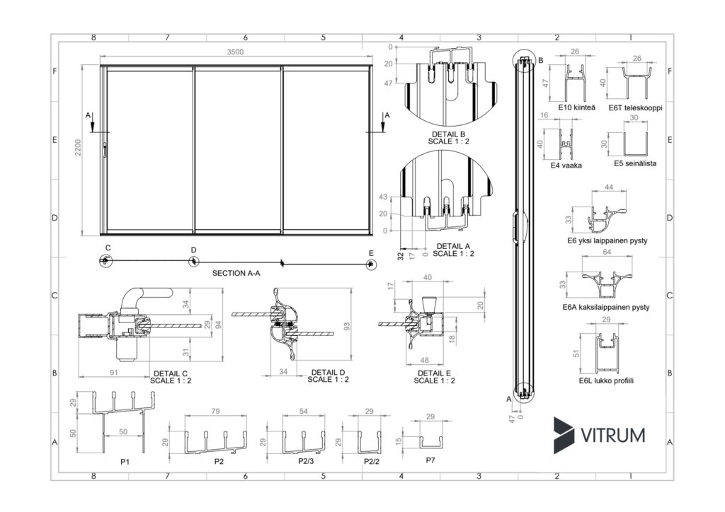 Lasien pystyprofiilien muotoilu on pyöristetty ja merellisen aaltomainen. Lasien kehysprofiilit ovat vahvoja, jolloin yksittäiset liukulasit voivat olla suuria, mikä parantaa järjestelmän käytettävyyttä sekä näkymän esteettömyyttä. Lasitusjärjestelmän tiivisteet ovat piilossa alumiiniprofiilien sisällä, joten tuotteen ulkonäkö on siro ja viimeistelty.