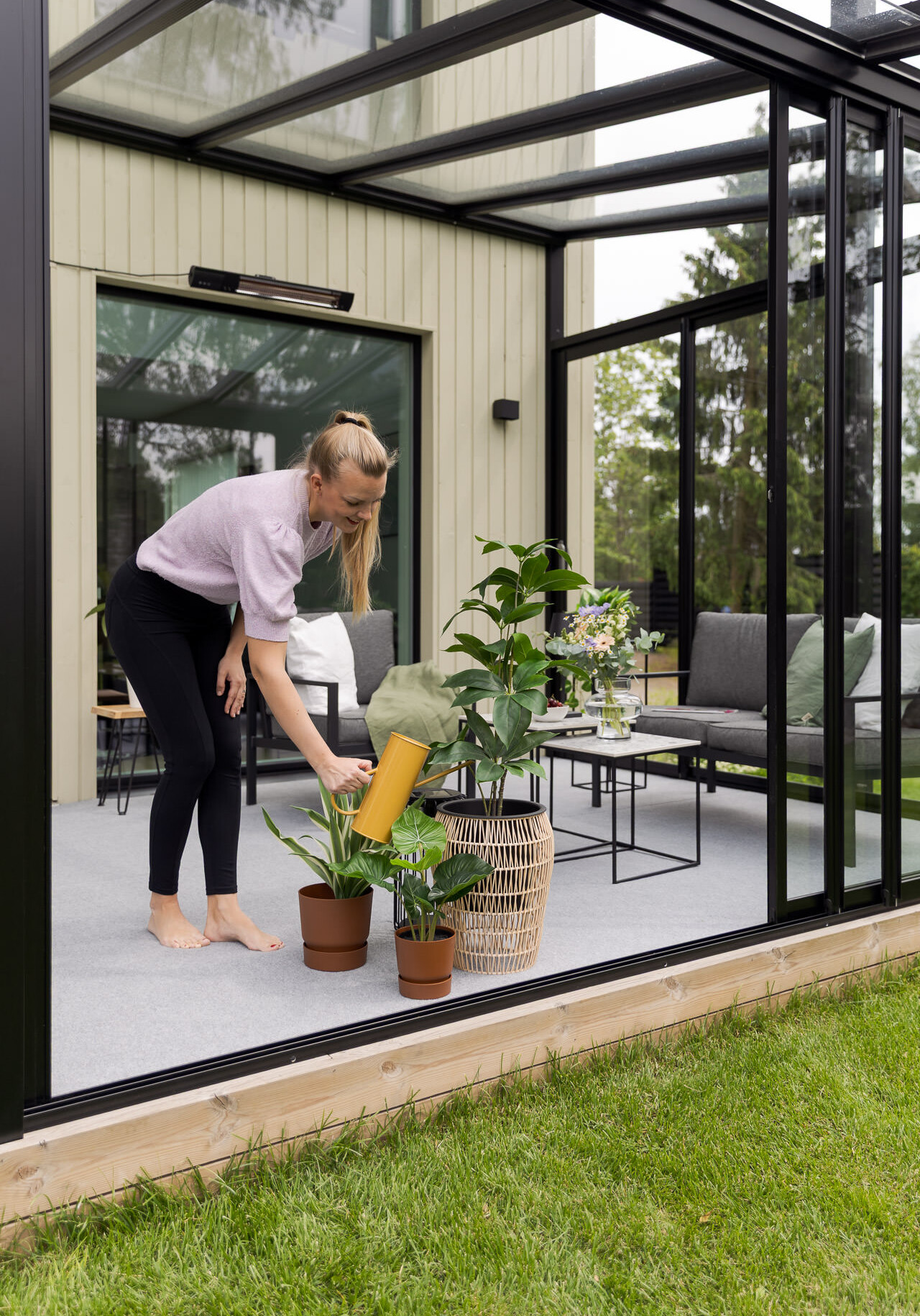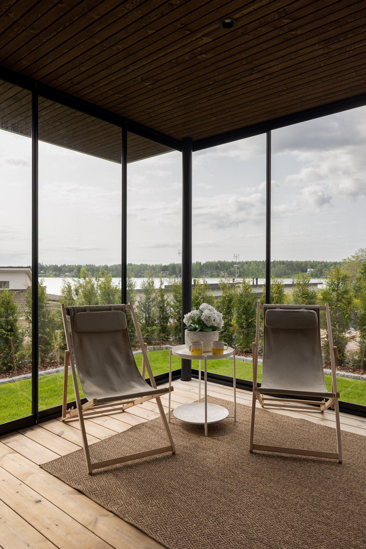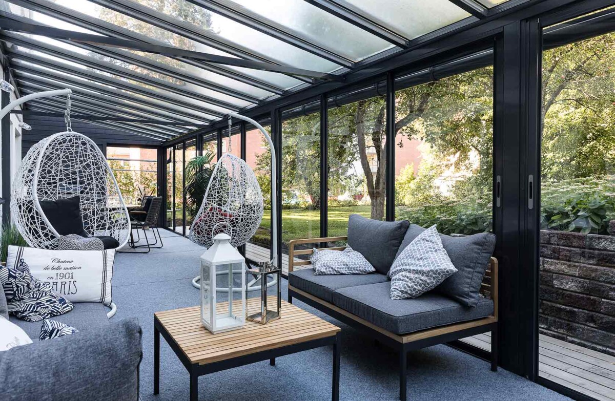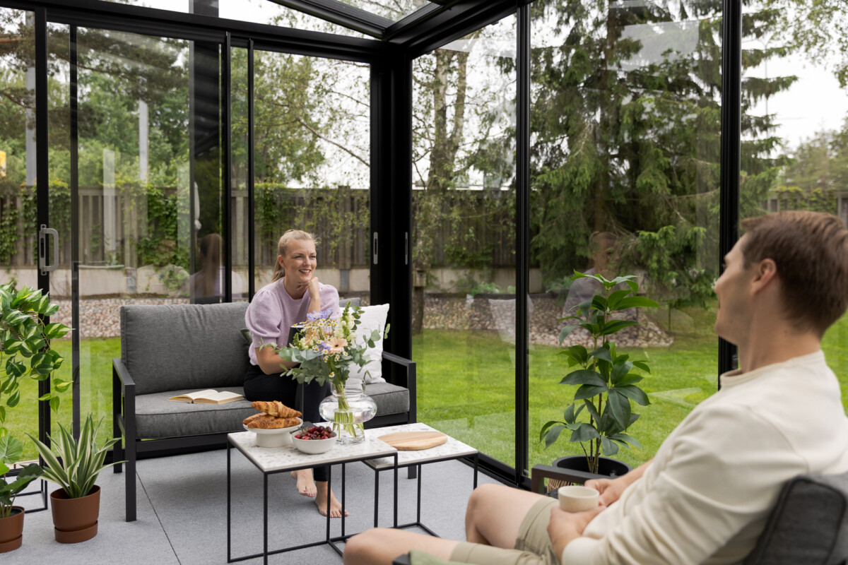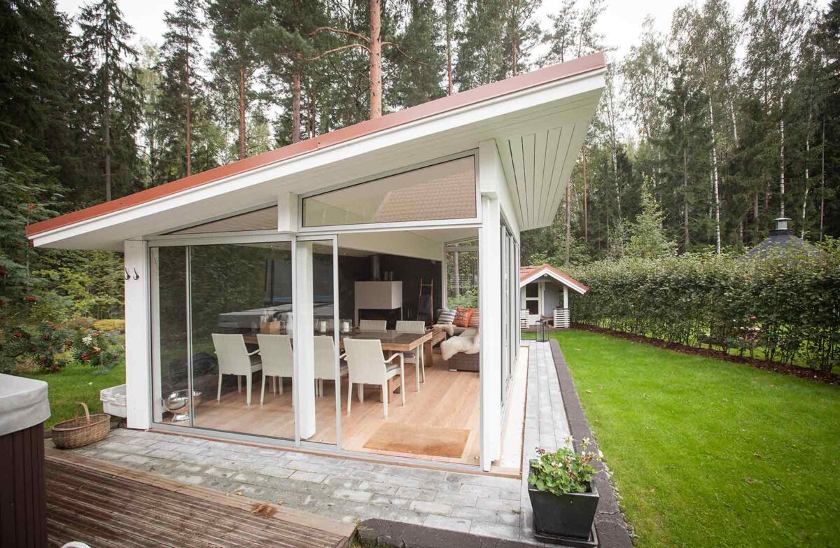 Suljettuna lasitusjärjestelmän lasit ovat ryhdikkäästi vierekkäin ja limittäin omilla raiteellaan, joten lasitettu tila pysyy suojassa sateelta, viimalta ja lumelta. Lasit saa liu’utettua kevyesti ja vaivattomasti toiseen reunaan vierekkäin tai keskeltä reunoille vierekkäin.